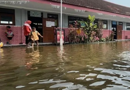 Hari Pertama Sekolah di Sidoarjo Disambut Banjir, Siswa Harus Bergantian Masuk Kelas